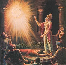 The next day Sage Durvasa came to Ambarish who wholeheartedly welcomed Him. The sage was very happy but he shook his head, 'Ambarish! I have just come...I need to wash up first and then we will both have some food...I think you are also due to break your fast soon...'