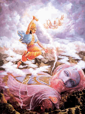 The sacrifice produced a demon named Vrtrasura to kill Indra. The demon was extremely ferocious but in the battle, Indra's power continued to increase and ultimately Vrtrasura was killed.